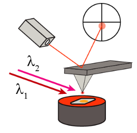One possible extension of the PFIR-type photothermal detection mechanism is to incorporate multiple laser radiations with different beam characteristics (i.e., frequency, timing etc.) Such integration of multiple frequency excitations enables new capabilities for peak force photothermal microscopy.
